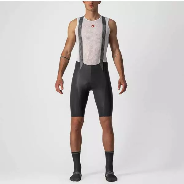 The Free Aero RC Pro Bibshort is our top race short, which also means that it’s insanely comfortable even if you never pin on a number. It’s fair to say that we’ve been working on this short for the past 15 years. That’s how long it’s been since the original Free Aero Race Bibshort was first introduced, initially as our top-of-the-line race short. Since then it has won three Tours de France, three Giri d’Italia, San Remo, Roubaix, Liège, and Lombardia, but it also became the best-selling product in the history of Castelli because, simply put, this is the short that does everything well. The concept is quite simple: start with the best pad we know how to make, surround it with a supportive short with good muscle compression, and then remove everything else that’s not absolutely necessary. You feel Free thanks to the reduced number of panels and the reduced number of seams. In fact, the short portion has just 5 panels compared to 10 in the previous generation. You feel Free because of further refinements to the Progetto X2 Air seamless seat pad. The two densities of foam plus the gel pads provide progressive damping, while the separate Skin Care Layer is soft and stretchy to move with your skin. You feel Free thanks to the most minimal bibs you’ve ever seen in a short, including open-weave straps for maximum airflow. But we reinforced the yoke so the straps stay in place and made the mesh back narrow for coverage that is minimal yet just enough to hold the shorts in place. And the bib elegantly frames a convenient pocket at the center back. You feel Free because this is the first high-end short that doesn’t need any sort of gripper or elastic at the end of the leg to keep the leg in place. Getting this right meant 28 prototypes and our most extensive test program ever, and it results in the most comfortable leg ending we’ve ever made. The Forza 2 fabric has 32% Lycra® with a high modulus for exceptional muscle support and just the right amount of compression. There’s reflective piping on the back. And all logos are sublimation printed so they will never peel, crack, or fade. What It Is The perfect mix of comfort and speed. Engineered for top-level racing, which also makes it supremely comfortable for every ride and rider. Product Features High-compression 215 g Forza 2 fabric with 32% Lycra® content provides exceptional muscle support and compression Progetto X2 Air seamless seat pad is soft against the skin but well padded for long-distance comfort Minimalist bib straps allow maximum airflow, while a reinforced yoke keeps the straps flat over the shoulders Rear mesh pocket 5-panel construction for reduced seams and less chafing Sublimation-printed graphic and logos that will never peel, crack, or fade Reflective piping on back of legs Soft waistband with raw-cut edge panels for extra stretch and comfort Raw-cut leg ending engineered to stay put without silicone grippers 15°-35°C / 59°-95°F Weight:183g