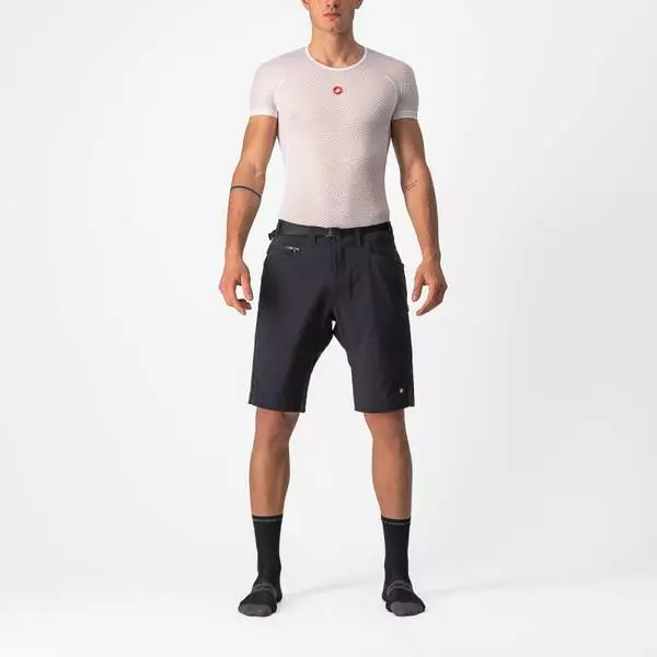 The performance baggy short with ultralight stretch woven fabric and adjustable ventilation to keep you cool. 165 g 4-way-stretch woven Cordura® fabric with DWR finish Double-slider zippered ventilation along full length of legs Extremely light so you won’t even feel it on 2 front pockets Adjustable webbing belt for secure fit at waist, with zippered front opening Scorpion button logo Looser fit at home on any trail. This baggy short is made for hard trail duty, when you want the look of a baggy but the freedom of Lycra®. The fabric is extremely light, just 165 grams per square meter, but hard wearing thanks to 64% Cordura® yarns. The 10% elastane gives it four-way stretch. Not only does it dry quickly, but the water-repellent fabric treatment means it sheds light rain and stays cleaner. The cut is slightly looser so it moves with you, never restricting. Yet the adjustable webbing belt at the waist lets you lock it in place so it won’t slide down. With the ultimate trail short you should never feel too hot, so you can open up the zippered ventilation openings that run the full length of the legs, made to work with the mesh legs of the Castelli Unlimited Ultimate Liner. You’ve never been this cool in a baggy short.