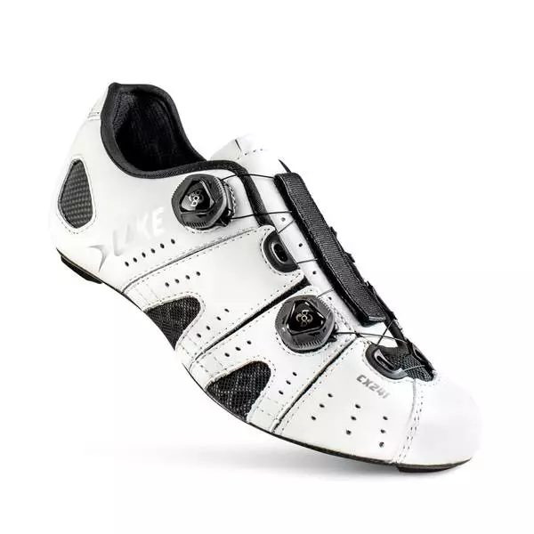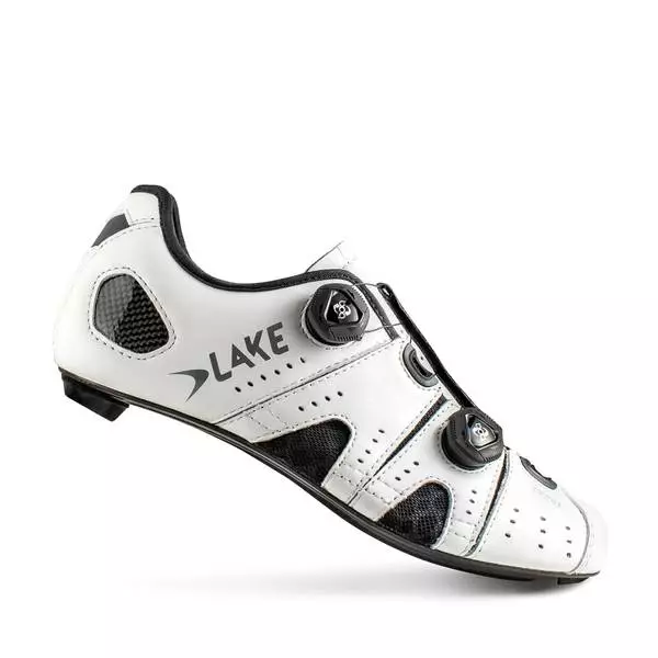CX/TX Competition Last with a profile specifically designed for very high-cadence riding & higher pressure, our Competition last features a more curved profile than the Sport last. The main differences include increased toe pitch & heel lift, a tighter heel & a slightly wider ball girth to allow the foot to expand under high pedaling pressures. OUTSOLE Lake Competition 100% Carbon Fiber Sole. Available in 3 hole cleat pattern. UPPER Helcor Abrasion resistant leather, full grain leather and Nufoam lining. Heat moldable carbon heel counter. CLOSURE Dual Side mounted Push/Pull IP1 BOA lacing system with releasable lace guides.