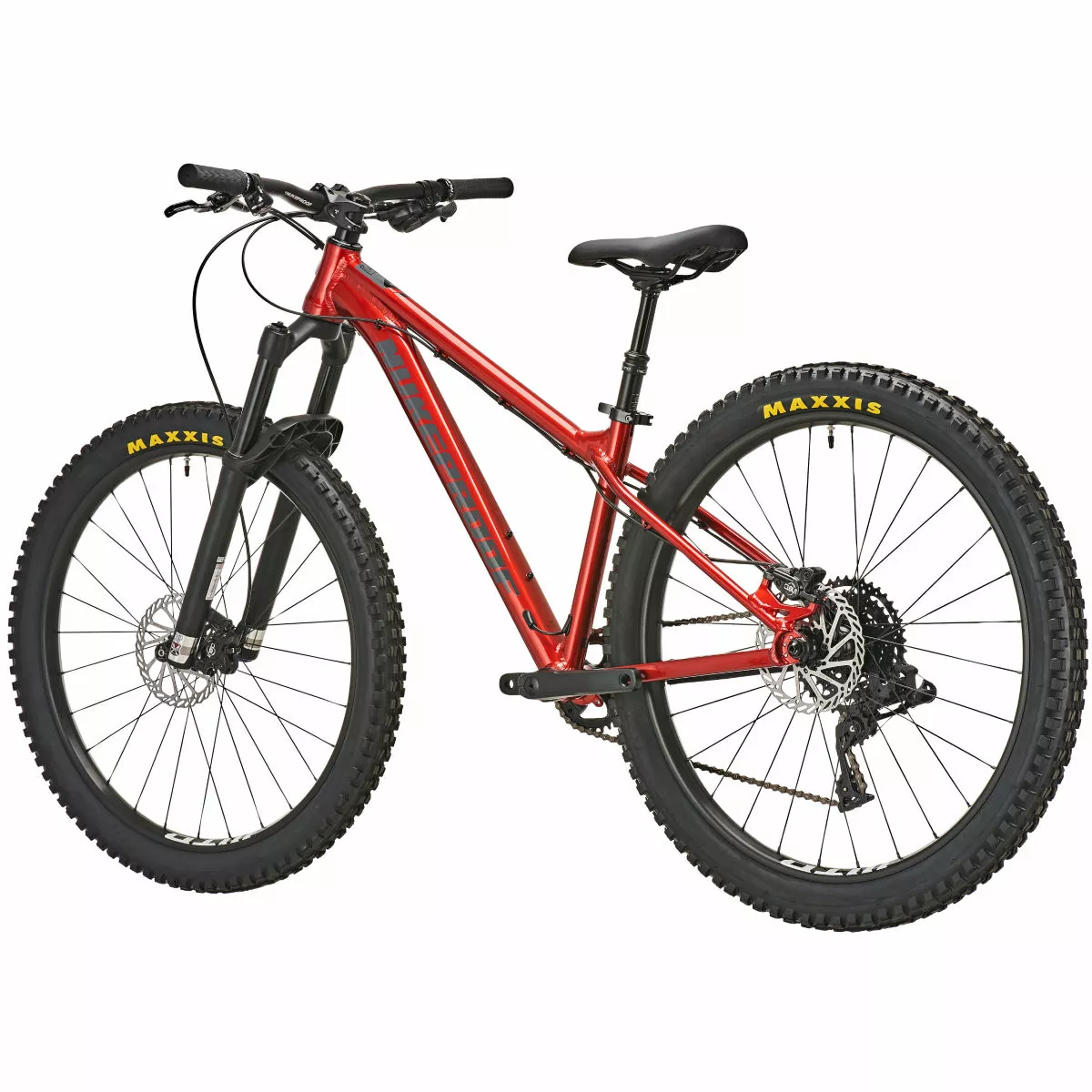Frame: Nukeproof Cub-Scout 26, custom-butted hydro-formed 6061 Alloy, internal cable routing for dropper seat posts, threaded bottom bracket, 142mm Bolt-thru rear axle spacing
